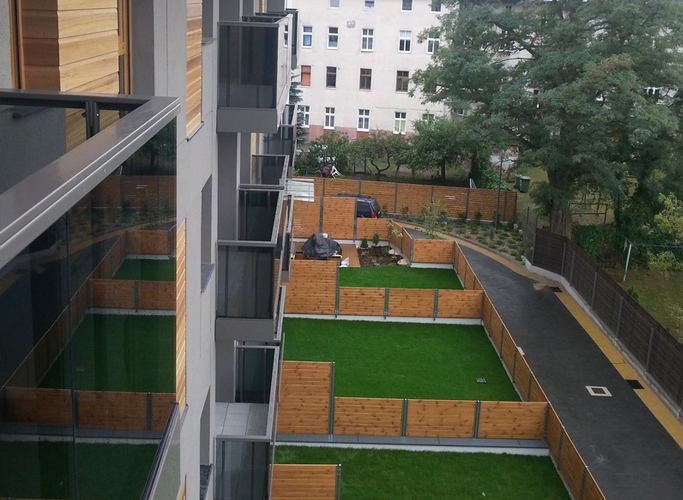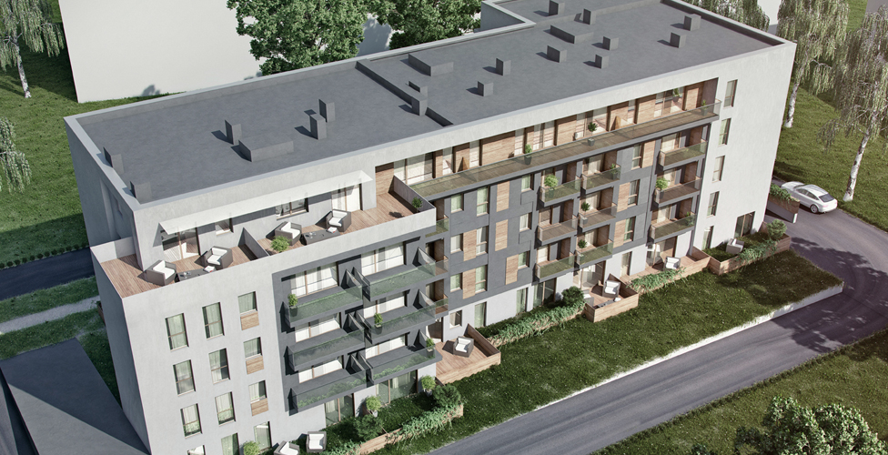 Projekt został zrealizowany przy zastosowaniu nowoczesnych rozwiązań, z użyciem wysokiej jakości materiałów budowlanych. Dla mieszkańców budynku przewidzieliśmy dwu lub trzypokojowe mieszkania w stanie deweloperskim. Wszystkie mieszkania mają własny balkon, loggię lub ogródek zielony oraz dostęp do dwupoziomowego parkingu podziemnego.”